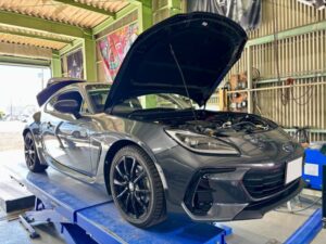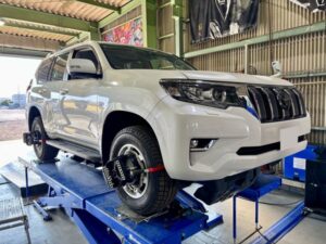 4輪アライメント調整や足回り交換などの他にも整備やお車の買取や販売、レンタカー、レッカーなどのサービスも行っております。