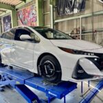 1G締め直しでは、タイヤが地面に接地している状態(1G状態)で、ブッシュを固定しているボルトやナットを緩めてから締め直します。