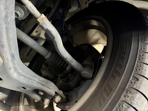 雨の日に左前を縁石にぶつけたという事で確認の為入庫となります。