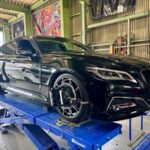 日産スカイラインHV37の足回り交換、ダウンサス交換、マフラー取り付け、4輪アライメント調整、車高調交換、タイヤ交換、スタッドレスタイヤ交換、タイヤは保管サービスことなら親切、丁寧な岐阜のフロンティアへお任せください!