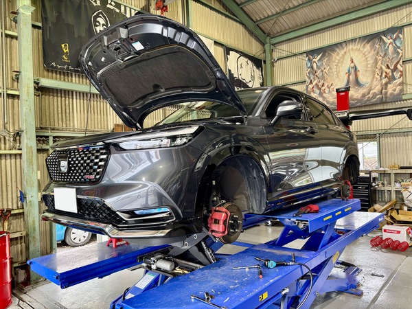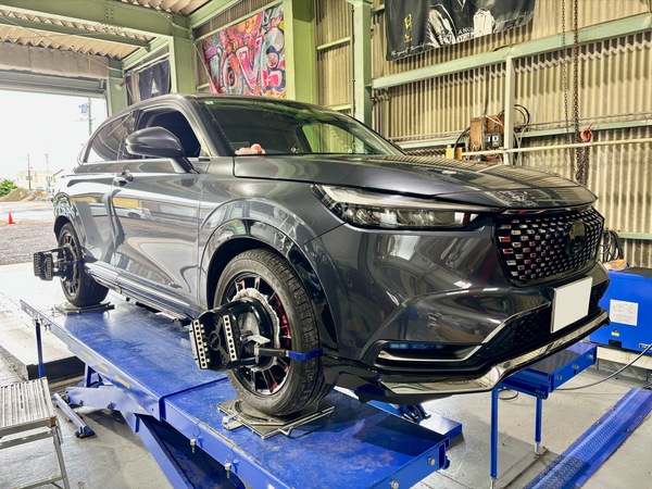 ホンダ、ヴェゼルRV5の足回り交換、ダウンサス交換、マフラー取り付け、4輪アライメント調整、車高調交換、タイヤ交換、スタッドレスタイヤ交換、タイヤは保管サービスことなら親切、丁寧な岐阜のフロンティアへお任せください!