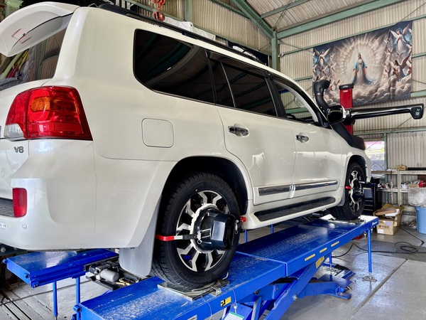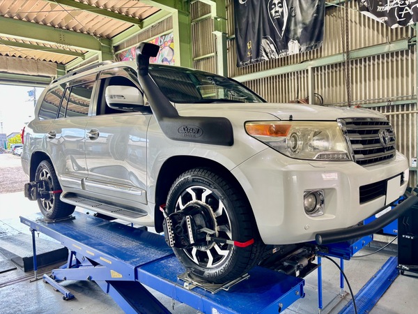 三重県鈴鹿市のB様より、トヨタ、ランクル200のスタッドレスタイヤ交換、4輪アライメント調整