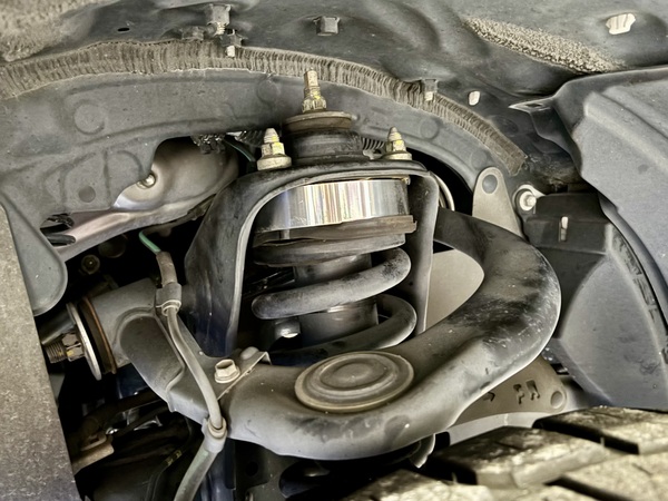 純正のアッパーマウントとサスペンションの間にACCイージーアップスペーサーを取り付けします。